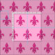 Stoffe in einem klassischen Muster (fleur-de-lis) in tieffuchsienrosa auf pastellrosa Hintergrund