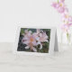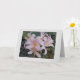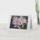 Eine 5"x7" Standard Faltkarte, Halbschweißpapier 12,5 pt Dicke/ 110 lb Gewicht, hellweißes Halbschallglas, mit einem Bild einer Auferstehungslilie, vorne und hinten, mit einem hellgrauen Rahmen /Hintergrund, innen blau.