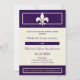 Die Einladungen zum Probe Dinner sind mit einem Lilie-Symbol in einem lila und cremefarbenen Ton im gelben Posterstil versehen. Personalisieren Sie die stilisierten Schriftart mit Ihren Namen und Veranstaltungsinformationen.
