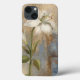 © Silvia Vassileva/wildes Apple. Das Bild zeigt eine weiße Lilie mit einer dekorativen quadratischen Fliese auf der Seite. Die Fliese ist in einem Schatten des Blaus.