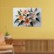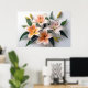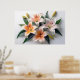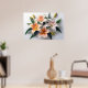 Poster mit eleganten Lilien in sanften Orangen- und Weißtönen, die mit lebhaften grünen Blätter auf hellen Untergründen angeordnet sind. Die detaillierten Blätter und Stamen fügen der Blumenkomposition eine realistische Touch hinzu.