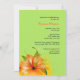 Eine atemberaubende Lilie schmückt die Vorder- und Rückseite dieser frischen Blumeneinladung. Der apfelgrüne Hintergrund kontrastiert wunderschön mit den roten, orangen und gelben der offenen Lilie. Geeignet für jede weibliche Affäre.Die Einladung ist leicht anzupassen mit Ihrem Wortlaut, Schriftart, Schriftart Farbe und Auswahl von sechs Papiertypen.