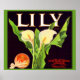 Lily-Orange-Krate-Etikett der 1930er Jahre Poster