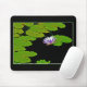 Lilienpolster und eine blühende Blume schweben auf dem Wasser eines Teiches.
