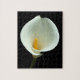 Ein schönes und herausforderndes Lilienpuzzle mit einer Blume aus weißer Lilie auf schwarzem Hintergrund.