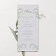 Eine mit Imitaten prägte Skizze einiger zarter Lilienstämme der Tal-Blume schmückt diese Lilie des Tales, mit Blumenmotiven, modernem klassischem Hochzeitsmenü, das schlicht aber raffiniert, zeitlos und elegant ist. Bitte beachten Sie, dass die Prägung durch ein Bild erzeugt wird und auf der Karte keine eigentliche Prägung erscheint. Dieses moderne klassische Imitat mit Hochzeitsmenü ist ideal für Paare, die eine klassische Hochzeitskunst bevorzugen und die den Prägeeffekt, Blumenthemen, insbesondere die Lilie des Tales und die klassische Hochzeitskalligraphie Liebe.