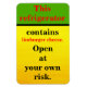 Dieser grüne und gelbe Magnet hat einen rot-schwarzen Text mit den Worten: "Dieser Kühlschrank enthält Limburger. Öffnen Sie auf eigene Gefahr." Dieser Text ist bereit, ihn nach Belieben anzupassen oder verlassen. Das ist ein Design von Dean Johnson Fine Art. Gracias für Ihren Kauf.