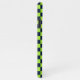 A vibrant checkerboard pattern with alternating neon yellow and black squares creates a striking geometric design, conveying a bold and energetic tone.