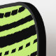 This pickleball paddle has an abstrack print with black stripes against a bright lime green background. It's ready to be personalized with a name on the front so that you can create your own one of a kind gift for your favorite pickleball player.