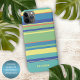 Moderne hellgrüne, dunkelblaue, helle Sommerorange und gelb gestreifte Streifen Muster Handy Gehäuse. Mit Raum zum Anpassen mit einem Namen, Monogramm oder Initialen Ihrer Wahl. Schönes, modernes und cooles Cover für den Trend-geschickten und kunstliebenden angesagten Trendsetter, künstlerischer Motif-Liebhaber, der will, ihr Handy vor Staub und Schmutz, Abnutzung und Tränen zu schützen. Dieses Design ist erhältlich in Apple iPhone 6, 7, 8 Plus, 10 oder X, XR, XS, 11, 12, 13 Mini, 14, 15 Plus, und Pro Max Handy Hüllen. Zeigen Sie Ihren Stil, sehen Sie modern aus und fühlen Sie sich stilvoll mit einem einzigartigen Design auf einem mobilen Zubehör Ihrer Wahl.