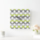 Lime Green Grey White Modern Polka Dot Pattern Quadratische Wanduhr