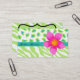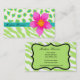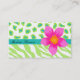 Erstellen Sie eine stilvolle Visitenkarte für einen großen Eindruck. Die farbenfrohe Zebrahaut und das gepflegte Design der Beta- oder Leopardenhaut gehören zu den angesagtesten Trends der Kunst und des Designs und sind von Mode zu Wohngestaltung sehr beliebt. Die aquamarine Zebra- und Cheetah-Printkollektion ist stilgerecht gestaltet. Eine fuchsienrosa Blume ist vorne auf einem türkisfarbenen aquamarinen Bar, der mit Ihrem oder Ihrem Firmennamen angepasst werden kann. Der Rücken hat eine grüne Fläche für alle Ihre Kontaktdaten für Ihr Unternehmen oder für den persönlichen Gebrauch. Diese Karte ist in mehreren Farbkombinationen erhältlich.