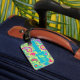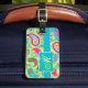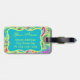 Identifizieren Sie Ihr Gepäck, Ihren Rucksack oder Ihre Computertasche mit diesem lustigen und stilvollen Gepäckanhänger. Sie werden diesen Farbspritzer dieses stilvollen Tags mit einem whimsy paisley Design und personalisiert mit Ihrem Monogramm, Initialen oder Namen. Die trendigen Farben dieses Paisley-Designs zeichnen sich durch einen limitierten grünen Hintergrund mit einem türkisfarbenen, aquamarin blauen Streifen aus und zeichnen sich durch ein individuelles Ambiente aus. Helle, frische, moderne Paisleys bilden ein wunderschönes künstlerisches Design, das inspirierende Worte von Liebe, Hoffnung, Glauben, Inspirier, Tschechisch, Be Happy, Dream, und Live im Hintergrund zwischen den Paisleys beinhaltet. Diese von Phyllis Dobbs entworfene Kollektion Mod Paisley verwendet die Farbtöne aquamarin, türkisblau, Limettengrün, Wein, Gelb, Fuchsien und Orange, um das traditionelle und beliebte Paisleymotiv zu genießen. Das Paisleymotiv ist zeitlos ansprechend, aber diese originelle Kunst ist zeitgenössisch und zugleich modern. Vollständig anpassbar für Personalisierung mit eigenen Worten, um Ihre eigene Nachricht hinzuzufügen.
