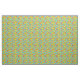 Dieser Stoff hat ein modernes Design aus sich wiederholenden Rechtecken in Kalkgrün, Zimtbraun und Türkis mit Kreisen, die oben angeordnet sind.