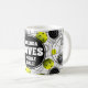 Eine lustige Kaffeetasse mit einem modernen Design aus Kalkgrün graue Pickleballs und Spiralen auf einem weißen Hintergrund mit schwarzen kreisförmigen und geraden Linien. Ein modernes Design, das perfekt für diejenigen ist, die Liebe pickleball. Sie können die Formulierung auf alles ändern, was Sie wollen. Der Stil, die Farbe und die Platzierung des Schriftartes können auch nach Ihren Wünschen geändert werden, ebenso wie die Größe und Platzierung des schwarzen Kreises hinter dem Text.