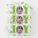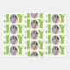 Kalkgrüne Freude mit Beeren Weihnachtsfeiertag Foto Umschnallpapier Blätter. Es zeigt ein Muster des Wortes "JOY" in Kalkgrün mit roten Beeren und Grün, während anstelle des Buchstabens "O" Ihr Foto steht.