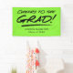 Feiern Sie den Absolvent mit einem modernen Abschluss-Banner! Das Banner des benutzerdefinierten Abschlusses enthält den Satz "Beifall für den Grad!". in handgeschriebener schwarzer Schrift mit gestrichelter Unterschrift. Personalisieren Sie das Limettengrün Abschluss Banner mit dem Namen und Abschluss des Absolventen Jahr. Das personalisierte Abschluss-Banner eignet sich sowohl für High School- als auch für Uni-Abschluss-Partys!