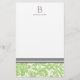 Hübsche und elegante helle Apfelgrün, Holzkohle grau und weiß schick Vintagen Blumendamast gemusterte mit Monogramm Schreibwaren für Braut und Bräutigam. Fügen Sie Ihren Anfangsnamen oder Ihren Namen hinzu, um ein einzigartiges personalisiertes Hochzeitsbriefpapier zu erstellen.