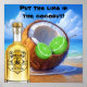Poster mit einer Limonen Kokosnuss und einer Flasche Rum am Strand mit Anleitungen, das Limone in die Kokosnuss zu legen.