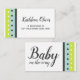 In diesem hellen, modernen Design habe ich einen modernen Skript-Schriftart mit einer Sans-Serif-Schrift kombiniert, die einen hübschen und Look ermöglicht. An den gegenüberliegenden Enden jeder Seite habe ich eine helle gestreifte und gepunktete Akzent-Grafik hinzugefügt. Die Palette in den fett gedruckten Bildern umfasst Kalkgrün, Rotkehlchen-Eiblau, Dunkelgrau und Weiß. Auf der Vorderseite ist ein Platzhalter-Vorlagenfeld für den Namen der Mutter und Details über den Geschenkladen. Auf der Rückseite wurde "Baby auf dem Weg!" in zwei Teile gerendert - eine deutlich größere - und in der Mitte des weißen Raumes platziert. Der Typ wird in der Koordination von dunkelgrau gerendert und Sie können verschiedene Schriftart verwenden, wenn Sie mit den Zazzle Editierwerkzeugen spielen möchten und dieses Design auf Ihre Bedürfnisse aktualisieren möchten. Bitte lass mir, ob du Hilfe bei der Anpassung brauchst oder ob du besondere Wünsche hast. // Designed by Melody Watson for Paper Muserie.