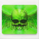 Ein Schädel mit Flügeln auf einem Limonen Grün barst wie Hintergrund.