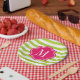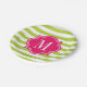 Limone grüne Streifen mit heißes Rosa-Monogramm Pappteller