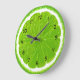 Vergnügen und farbenfrohe Küchenuhren mit einem Limonen Stück auf dem Hintergrund und Uhrennummern, die Ihnen helfen, die Zeitspur im Stil behalten.
