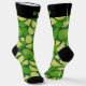 Limes und Blätter. Nahtloses Muster. Benutzerdefinierte Hintergrundfarbe. Benutzerdefinierte Farbe des oberen Streifens. Benutzerdefinierter Text auf jeder Socke.