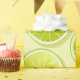 Ein Muster aus frischen und saftigen Limonen Scheiben in leuchtenden, lebhaften Kalktönen, mit einer Aquarellstruktur, die ihm das frisch geschnittene Aussehen verleiht. Sie sind auf einem hellgelben/grünen Hintergrund platziert, um einen hellen & sommerlichen Look zu erhalten.