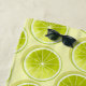 Ein Muster aus frischen und saftigen Limonen Scheiben in leuchtenden, lebhaften Kalktönen, mit einer Aquarellstruktur, die ihm das frisch geschnittene Aussehen verleiht. Sie sind auf einem hellgelben/grünen Hintergrund platziert, um einen hellen & sommerlichen Look zu erhalten.