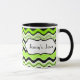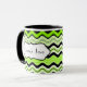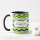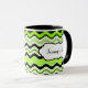 Diese stylische limiengrüne, schwarz und weiß gestreifte Keramik Tasse ist mit Ihrem eigenen Text personalisiert. Ideal für Mittag- oder Uni-Schlafsäle. Sie können auch andere Stile und Größen auswählen.