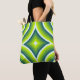 Dieses Bild weist ein geometrisches, nahtloses Muster auf, bei dem konzentrische Kreise an ihren Schnittpunkten rautenförmige Impulse bilden. Die Farbpalette umfasst lebendige Kalkgrün- und aquamarin-Farbtöne, die ein dynamisches und energetisches Aussehen schaffen, das an Retro- oder psychedelische Designstile erinnert. Die Symmetrie und Wiederholung verleihen einem rhythmischen, hypnotischen Gefühl, das Design ist visuell auffallend und für den Einsatz in Hintergründen, Textilien oder digitalen Kunstwerken geeignet.