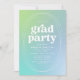 Moderne Graduiertenparty mit einzigartigem geometrischem Rahmen mit limigem, türkisfarbenem und blauem Gradientenhintergrund. Das "Grad Party" wird in fett gedruckter, weißer Schrift mit dem Namen des Absolventen und den Party-Details, die unten gezeigt werden, angezeigt. Die trendy Abschlussfeier lädt sowohl für Absolventen der Highschool als auch für Unis zum Verweilen ein.