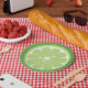 Teller aus Papier, die wie eine Hälfte eines Limonen aussehen. Ideal für ein Picknick im Sommer.