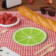 Papierplatte als moderne, stilvolle Scheibe Limonen, mit detaillierten und strukturierten Segmenten - eine originelle tropische Obstillustrierung in Fotoshop und Adobe Illustrator