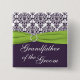 Dieser grüne und lila Damast mit Imitat Band und Juwelen Großvater des Groom Knopf passt zu der Hochzeitseinladung unten. Der Text ist anpassbar, ebenso die Form und Größe der Schaltfläche. Wenn Sie irgendetwas ändern möchten, senden Sie bitte eine E-Mail an niteowlstudio@gmail.com.