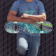 Originelle Aquarellmalerei von Sandra Gale, mit einem abstrakten, abstrakten Design von ultramarinblauen, Limonen, gelben und violetten lila Aquarellfarben, die alle zusammenpassen, um diese stimmungsvolle und reiche, aber weiche Farbkombination zu schaffen. Sehr coole und einzigartige nasse Aquarellkunst, die auf einem freundlichen Skateboard, Kissen, Leggings, Moden und wiederverwendbaren Einkaufs- oder Sporttaschen großartig aussieht.