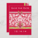 Save the Date Limone Himbeere Himbeerherzen und weißer Damast Tiefenrosa Himbeere, aber Sie wählen Card und Schriftart Farben.