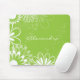 Fügen Sie Ihren Namen dieser weißen und grünen abstrakten Hand gezeichnetes Blumenmousepad hinzu.
