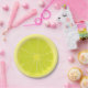 Limon Fruit Party Papier Teller von Nisha Prabhu entworfen. Limone Darstellung von Fruchtvektoren. Die Farbe Lime Green verbindet sich eng mit der Natur und repräsentiert hohe Vitalität, Frische, Lebendigkeit und Fantasie.