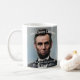 Eine Muss Kaffee-Tasse für jeden Patrioten. Ein Bild von Abraham Lincoln mit seinem Zitat "Der Stimmzettel ist stärker als die Kugel." Auf der anderen Seite ist eine Vintage Postkarte des Zivilen Krieges mit einem anderen Zitat von Lincoln: "Wie viele Beine hat ein Hund, wenn man seinen Schwanz ein Bein nennt? Vier. Sprichwort, dass ein Schwanz ein Bein ist, macht es nicht zu einem Bein."