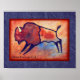 Linda Baysinger Pecks Aquarellmalerei eines stilisierten Büffels oder Bison. Finde das verborgene Gesicht. Blue Imitate denim border.Image © Linda Baysinger Peck Alle Rechte vorbehalten