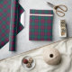 Geschenkpackung mit dem Tartan für Clan Lindsay und seine Abschnitte, einschließlich Byers und Cobb. Maroon und hellgrün schottisches kariertes Muster aus dem Jahr 1842, mit dunkelkönigsblauen Akzenten.