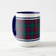 Kaffee-Tasse mit dem Tartan für Clan Lindsay und seine Stücke, einschließlich Byers und Cobb. Maroon und hellgrün schottisches kariertes Muster aus dem Jahr 1842, mit dunkelkönigsblauen Akzenten.