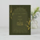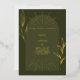 Grüner Bogen über grünem Hintergrund mit Liniengrafik und botanischem Design.