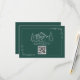 Hochzeit RSVP mit Bergen und immergrüner Illustration mit botanischer Grenze. Hintergrund ist smaragdfarben. Personalisieren Sie den Text und den QR-Code.