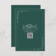 Hochzeit RSVP mit Bergen und immergrüner Illustration mit botanischer Grenze. Hintergrund ist smaragdgrün. Personalisieren Sie den Text und den QR-Code.