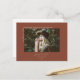 Maßgeschneidertes Foto zur Ausrichtung der Landschaft mit Namen, Schule und Jahr an der Spitze links mit "graduate" script line art am unteren Rand. Hintergrund ist dunkle Terrakotta. Personalisieren Sie die Nachricht auf der Rückseite.