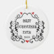 Line Art Wreath Personalisiert Bester Pate je Keramik Ornament. Personalisieren Sie Ihre persönlichen Daten sowohl auf der Vorder- als auch auf der Rückseite.