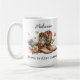 Fügen Sie Ihrer Lieblings-Tasse Kaffee eine Touch von rustikalem Charme und blumiger Schönheit hinzu. Diese individuell gestaltete Tasse mit stilvollen Cowboystiefeln, die mit lebhaften Aquarellfarben-Blume geschmückt sind. Die braunen Stiefel zeigen ein aufwändiges Blumenmuster auf der oberen Hälfte, perfekt ergänzt durch einen Strauß umliegender Blume in sanften, farbenfrohen Farbtönen. Dieses einzigartige Design verbindet Landleben mit femininer Eleganz und macht es zu einer idealen Tasse, um Ihre heiße Schokolade, Tee oder Kaffee zu halten. Ein perfektes Geschenk für den Liebhaber des Westerns, Freund, Tänzer in Ihrem Leben. Anpassen mit Namen.